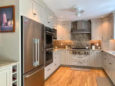 These clients started out with oak cabinetry in an '80s style kitchen. We teamed with them to create an aesthetic that remained true to their house on the lake.